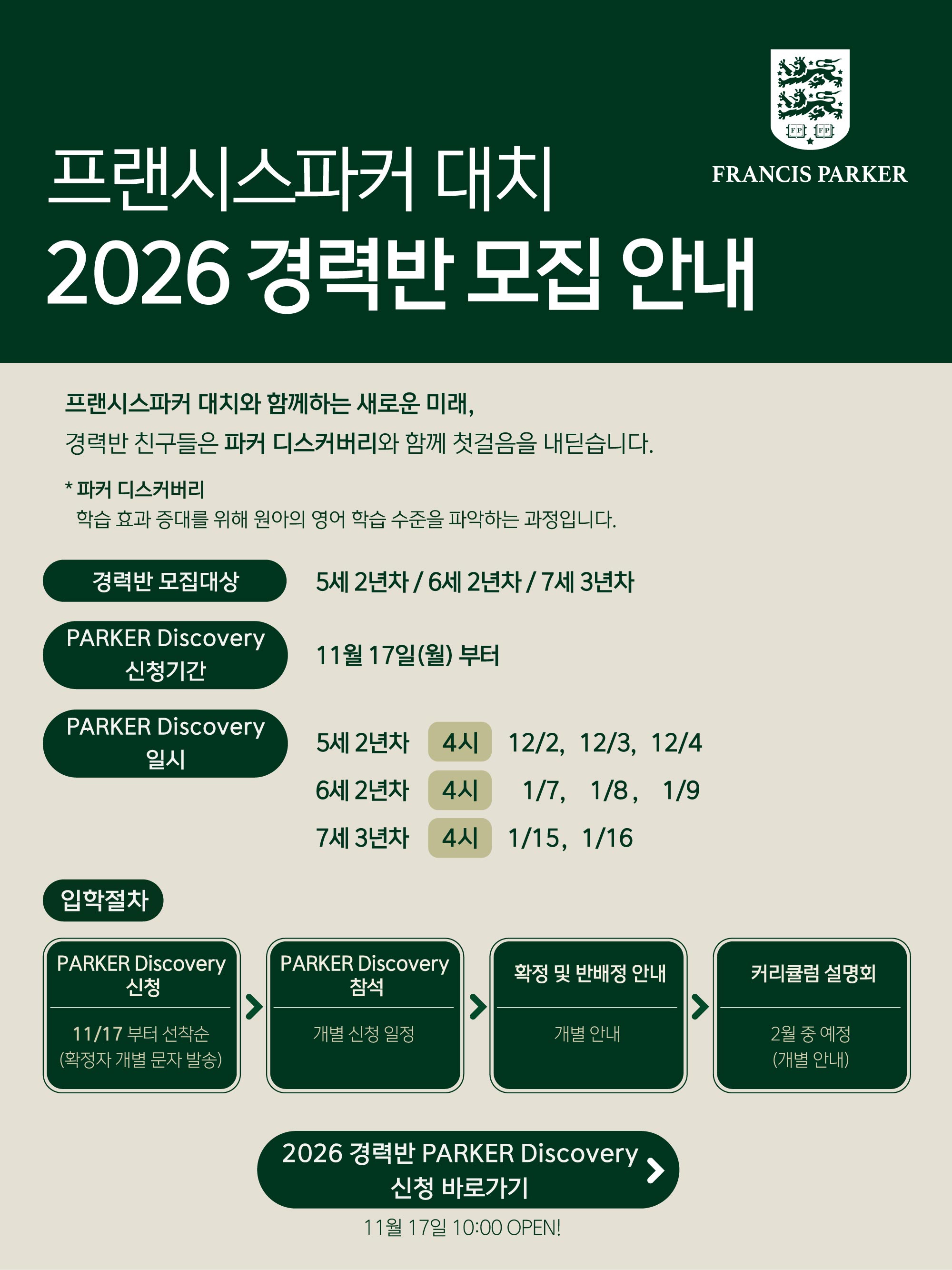 프랜시스파커 대치 2026 경력반 모집 안내